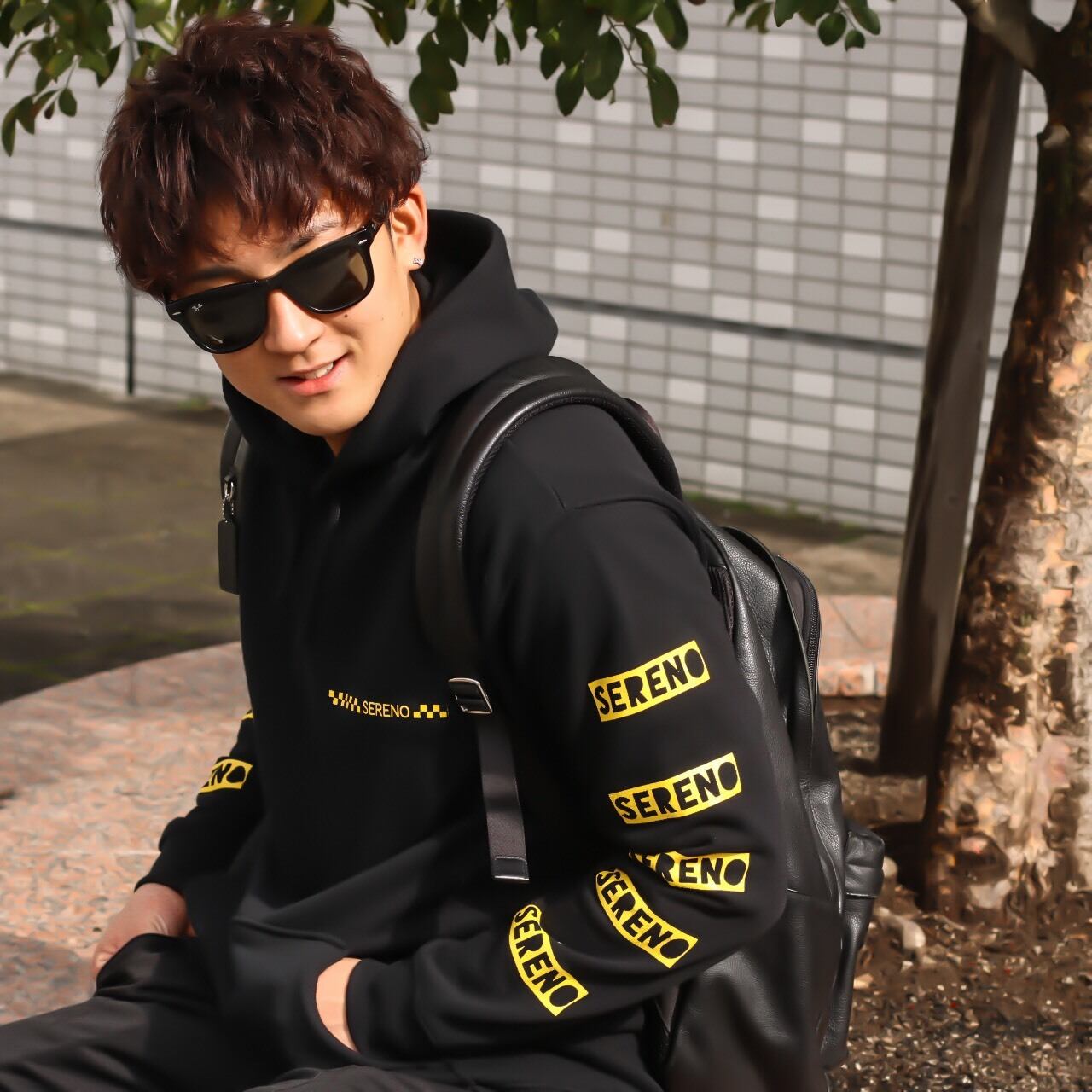 SERENOのブランドカラーである、イエローを取り入れ、袖にロゴを取り入れてます!