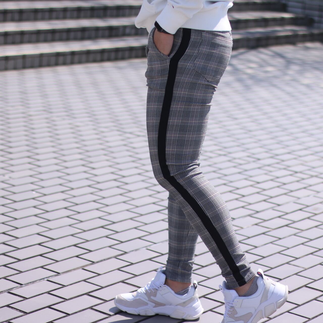 サイドラインがアクセントでチェック柄のスーパースキニーパンツです!