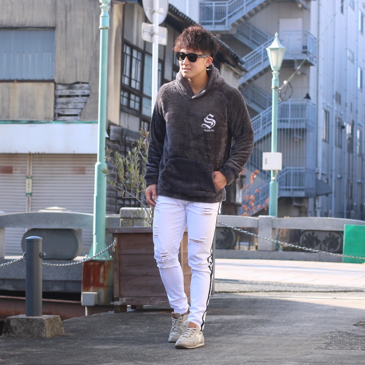 SERENOの刺繍ロゴをフロントに取り入れ、後ろから見てもオシャレに着こなせる様にフード部にも刺繍を入れております!