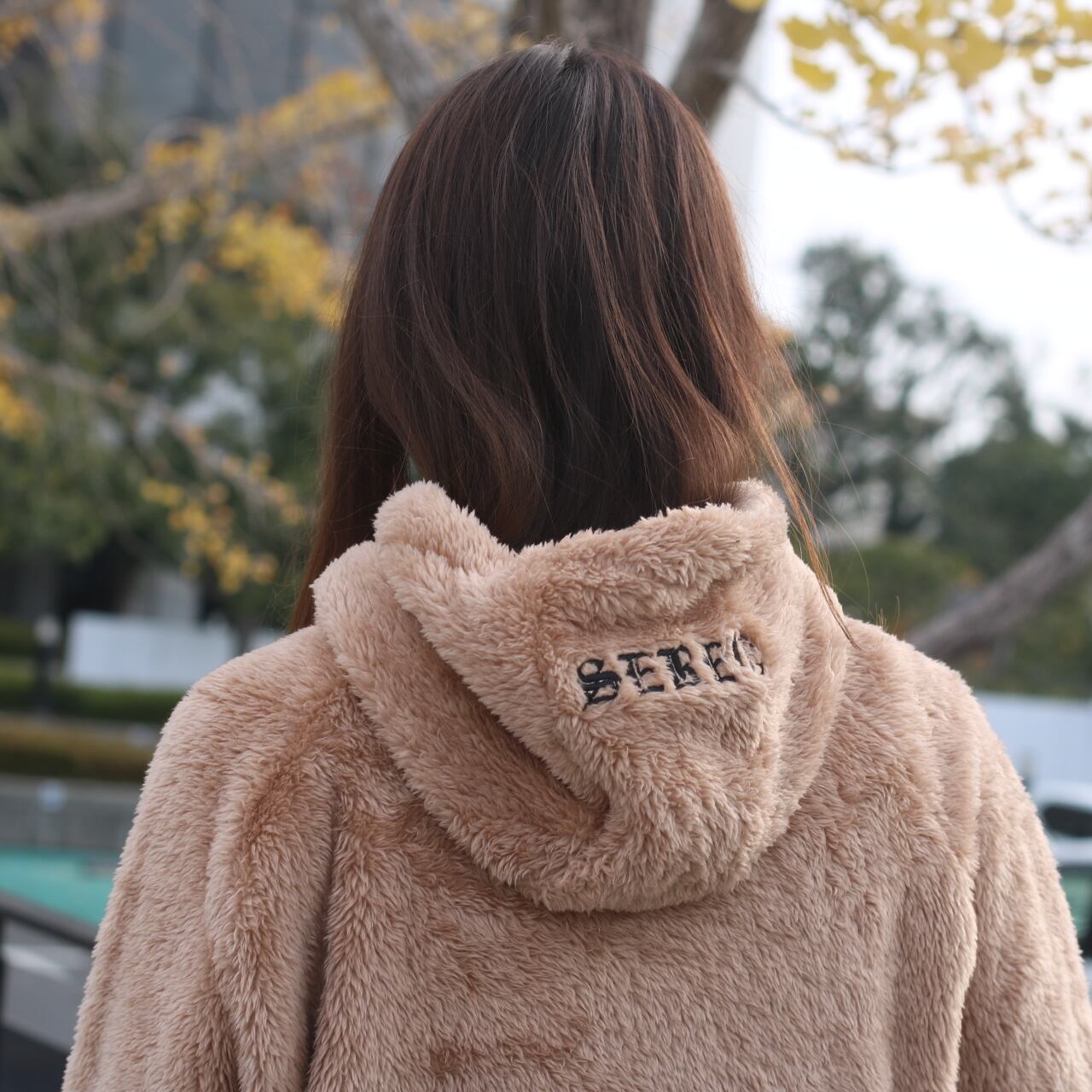 SERENOの刺繍ロゴをフロントに取り入れ、後ろから見てもオシャレに着こなせる様にフード部にも刺繍を入れております!